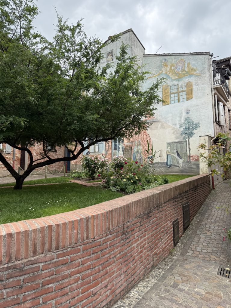 Entre street art et fresque patrimoniale, ce mur peint rend hommage à l’histoire d’Albi, ville d’art et de foi. En arrière-plan symbolique, la silhouette de Sainte-Cécile plane, rappelant le poids du passé religieux dans l’identité albigeoise. Une manière artistique de faire dialoguer mémoire et modernité dans l’espace urbain.