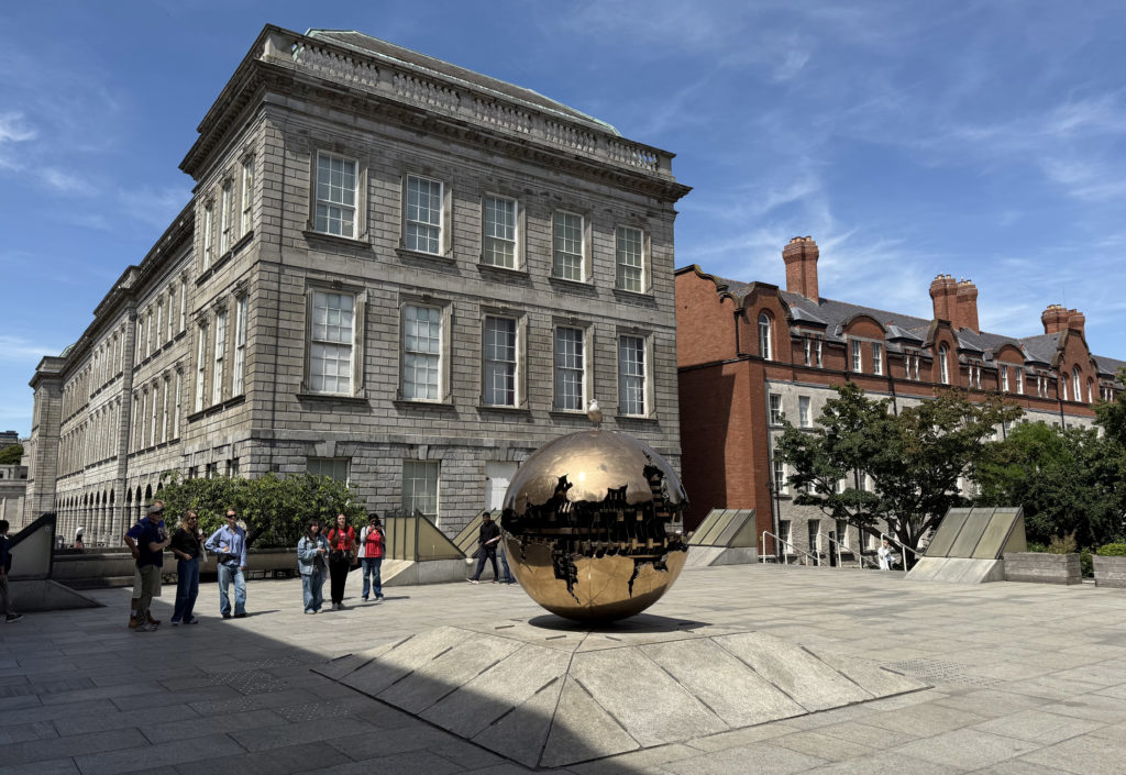 À défaut d’un rendez-vous institutionnel à la Dublin City University, la visite du Trinity College s’impose. Entre patrimoine académique et art contemporain, la prestigieuse université offre un moment de découverte… et de réflexion, devant l’œuvre sphérique d’Arnaldo Pomodoro.