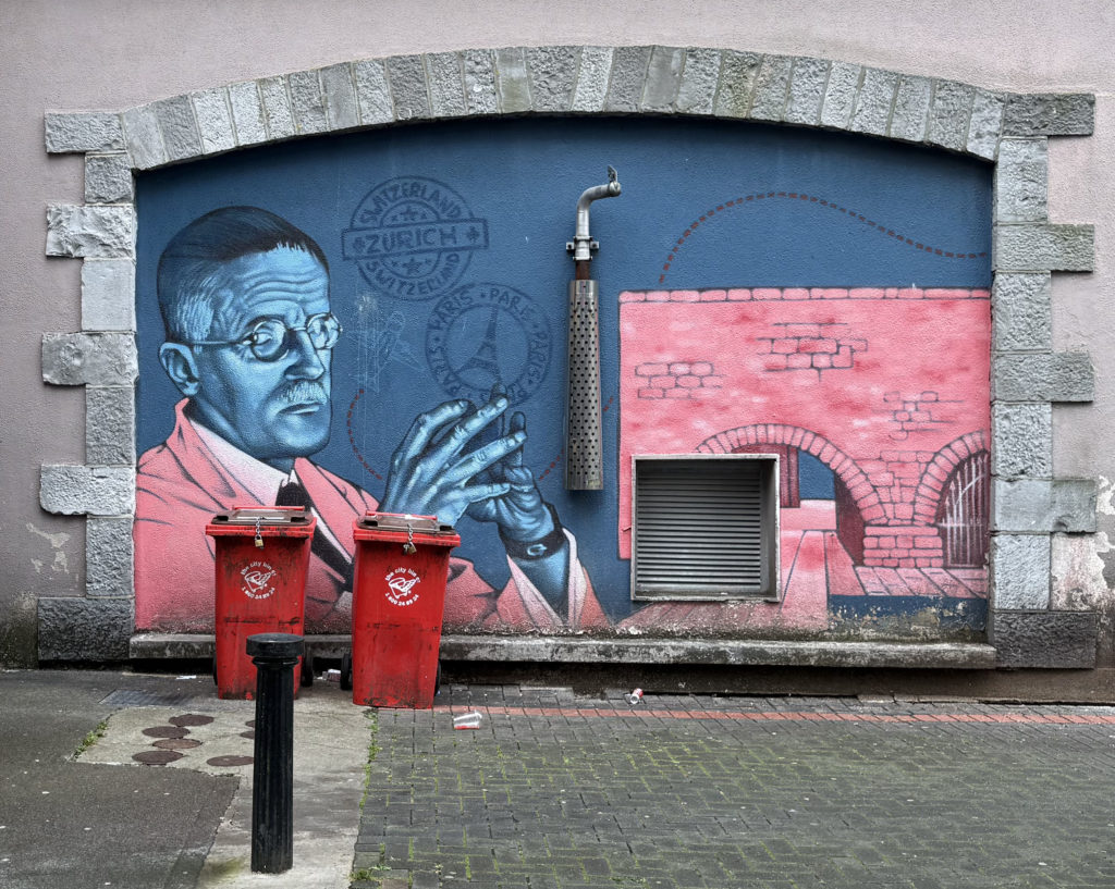 À Galway, comme dans toutes les villes visitées, le street art s’invite jusque dans les ruelles. Cette fresque représentant l’écrivain irlandais James Joyce évoque aussi Paris et Zürich, deux villes marquantes de son parcours. Une œuvre qui dialogue subtilement avec les sons et les images du Galway International Arts Festival.