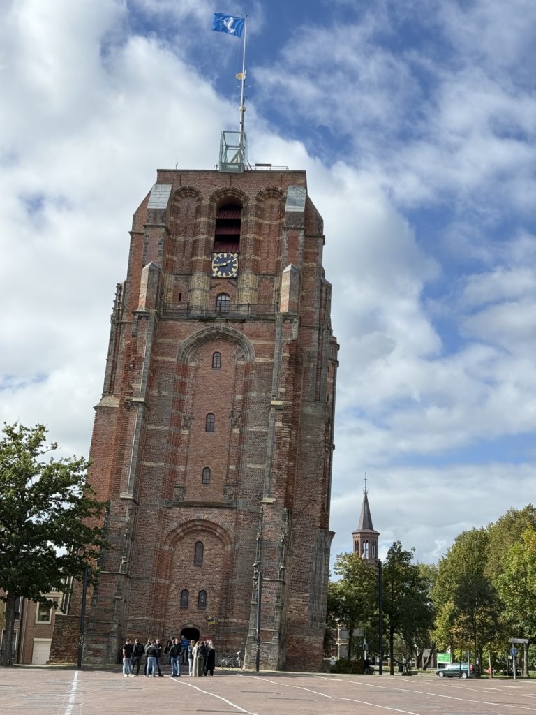 La tour Oldehove, emblème de Leeuwarden, est connue pour son inclinaison comparable à celle de la tour de Pise. A la différence de sa cousine italienne, Oldehove s’est mise à pencher dès le début de sa construction, victime d’un affaissement du sol sous son propre poids. Témoignage de la complexité des terrains néerlandais, elle rappelle que même les ingénieur·es et les architectes doivent parfois composer avec les imprévus de la nature. Une démonstration que la gravité a toujours le dernier mot.