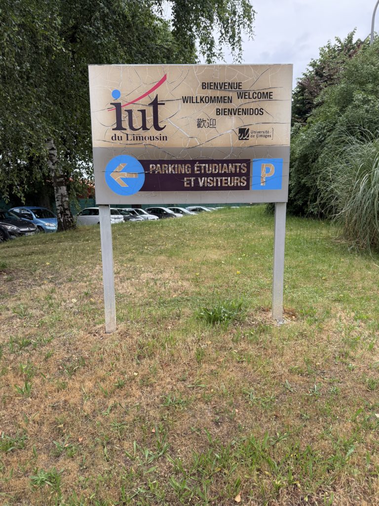 À l’entrée comme à la sortie, cet écriteau craquelé donne à voir une mosaïque un peu vieillie, mais pleine de caractère. Un dernier clin d’œil à une visite riche d’échanges et de découvertes au sein d’un IUT en pleine dynamique pédagogique. Un accueil chaleureux qui mérite, comme les bâtiments, un petit coup de neuf.