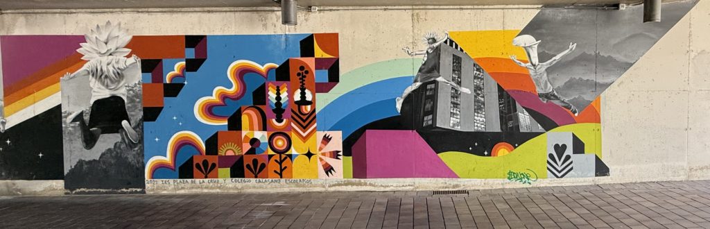 Une fresque haute en couleur où trois personnes semblent s’envoler vers de nouveaux horizons. Est-ce le symbole d’étudiantes et d’étudiants prêts à déployer leurs ailes avec de nouvelles compétences ou bien mon propre envol vers la prochaine étape ? On ne le saura pas, mais l’élan est là !