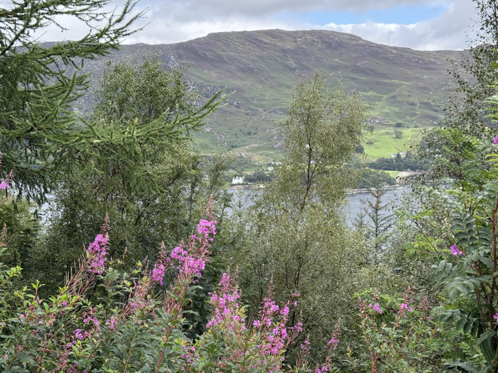 Entre la végétation luxuriante, le regard devine un loch discret, blotti au pied des collines. Le ciel hésite, comme souvent ici, entre éclaircie timide et nuage tenace.
