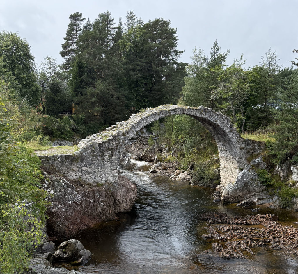 Le vieux pont de Carrbridge, témoin du XVIIIe siècle, enjambe la rivière comme suspendu dans un paysage aussi sauvage qu’enchanteur présentant un décor qui semble tout droit sorti d’un roman.